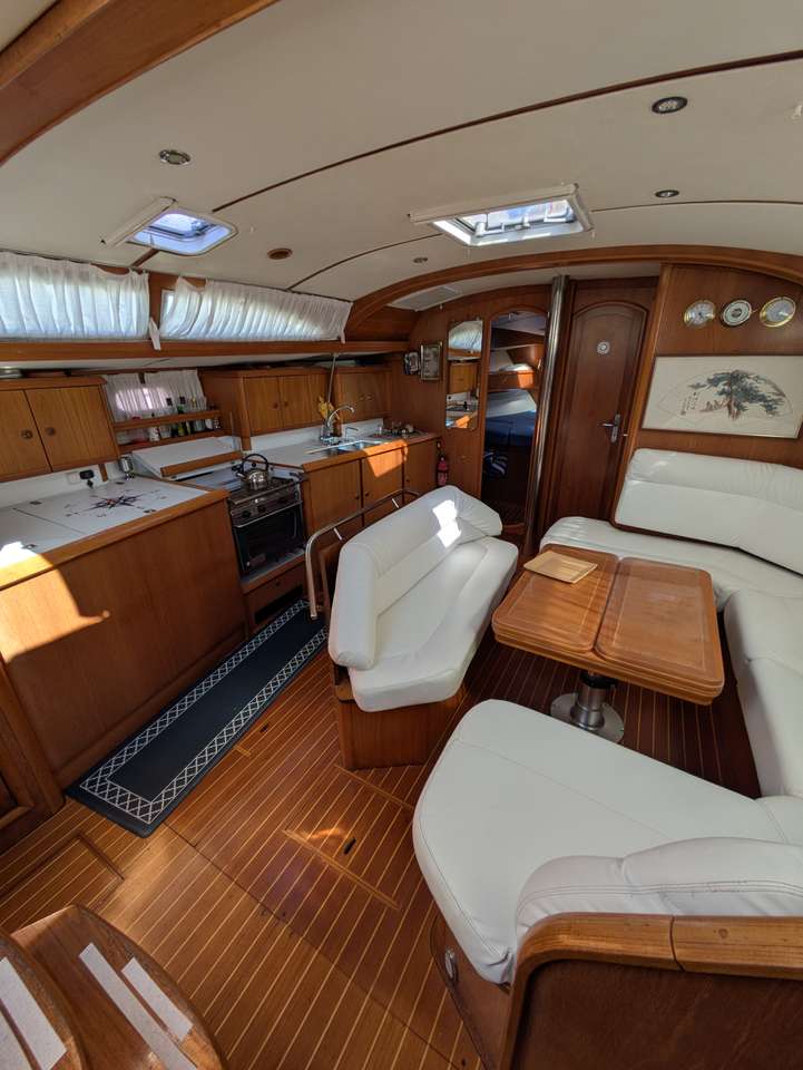 Będziesz żeglować po Korsyce na pokładzie Thien Hau, łodzi Sun Odyssey 45.2 o długości ponad 14 metrów. Łódź ta doskonale łączy w sobie moc i komfort na morzu. Kokpit jest idealnym miejscem na relaks lub lunch, podczas którego można podziwiać nadmorskie krajobrazy. Przestronna i jasna kabina jest wyposażona w eleganckie wykończenia z drewna wiązowego. Z łatwością pomieści wszystkich gości. Drabinka kąpielowa pozwoli Ci łatwo i bezpiecznie wrócić na pokład po kąpieli.